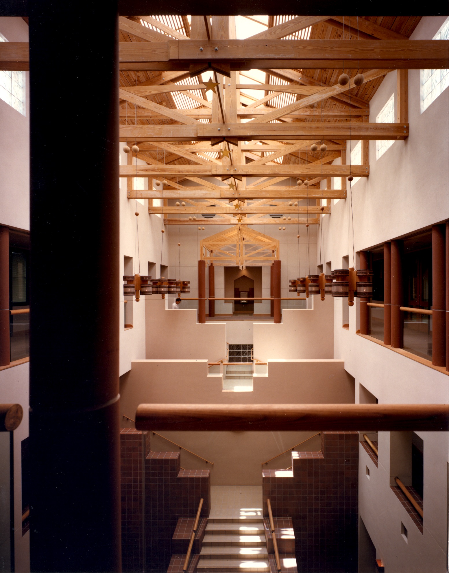 Programming and space planning were important components of the total project services. A three-story skylit atrium and a monumental stair and upper-level walkways overlooking it—a strong central space for entry and orientation—are conducive to interaction between members of the different units that make up the Commission. The open walkways are extra-wide to accommodate informal gatherings, and offices have doors and windows opening onto them.